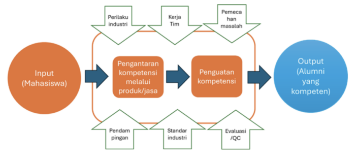 - Mahasiswa harus terlibat langsung dalam proses produksi sehingga kompetensi yang dibangun berdasarkan kebutuhan produksi.